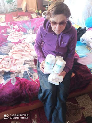 Here she is holding much needed medication paid for by donors in Canada, and below are a few photos of other basic needs the charity helps provide to others in need - including medical, food, shelter, running water, and clothing.
